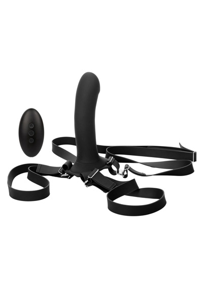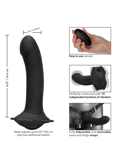 The Her Royal Harness Me2 Remote Rumbler is crafted to take mutual satisfaction to a whole new level. The ultra-powerful remote control dual motor probe is sure to send you spiraling towards ecstasy. An easy-touch remote control makes cycling through the orgasmic options a breeze. The curved shaft, tickler base and 2 powerful vibration motors located in the shaft and the base to create a pleasure paradise for two with every use. Feel the heat rise while the pleasure ticklers tease you with 10 independent functions of vibration. The versatile shape and dual motor design make for indulgent and creative pleasure play. Take this waterproof probe for a dip and embrace powerful vibrations in the bath, shower or hot tub or use the playful remote to enjoy a range of up to 16.5 feet (5 m) away! The versatile vibrator shape and contoured base allows you to slip this probe into your favorite harness for hands free play. Recharge the premium silicone massager in 2.5 hours with the provided USB charging cable to enjoy 45 minutes of high-speed stimulation or 150 minutes of low speed vibrations. The thick, durable silicone straps are fully adjustable, can be removed and fit up to a 52' Waist (132 cm) with plenty of extra stretch. While the easy button controls the intensity and the plump probe gives you the stimulation you want, the integrated state of the art memory chip remembers just how you like it by starting on the last function used. The self-sealing charging port and virtually seamless body let you get steamy in and out of water with this waterproof probe. The hypoallergenic premium silicone is body safe, unscented and phthalate free to keep you most sensitive spots, happy and healthy.