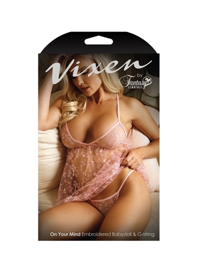 Embroidered Sheer Mesh Babydoll & G string Panty