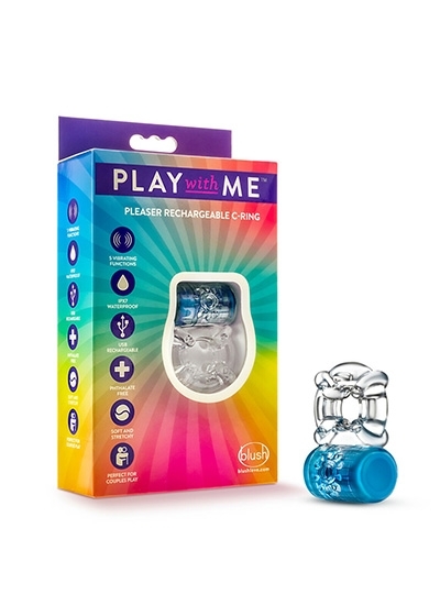 Amplify your pleasure and extend your playtime! Play With Me Vibrating C-Rings can be worn around the base of the shaft or underneath the balls and are stretchy and soft, sized to comfortably fit all. The Play With Me Pleaser has a powerful vibration for partnered play. Choose from 5 different vibration patterns - 1 speed and 4 thoughtfully designed vibration patterns. USB rechargeable, cable included. Position the vibrating bullet between you and your partner during partner play or directly on any pleasure point on your own body during solo play! Responsibly Made By Blush. We Care About Your Health And Wellness And Are Mindful Of What We Provide For Your Body. Lab Tested & Certified In Compliance With Prop65 & REACH Product & Material Safety Requirements. We Recommend Cleaning With Soap And Water Before And After Use. Silicone, Water Based, Hybrid Lube Safe.