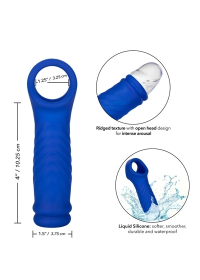 Set sail for a sea of uncharted pleasure with the Admiral Liquid Silicone Wave Extension. The super sized enhancer wraps tight around your pleasure tool to increase girth, support, and maximize arousal. While you thrill your lover with increased girth and ribbed texture, the fulfilling enhancers powerful erection support and tight chamber result in explosive endings for both of you. The erotic enhancer sleeves ultra stretchy material and spacious chamber is made to fit even the biggest man. The textured chamber and built-in scrotum strap provide increase stimulation and powerful support. Wrap your pleasure tool in this super stretchy sleeve to easily increase stamina, stimulation and orgasmic pleasure. The flexible enhancer is made from a liquid Silicone, a softer, smoother, and more durable material made for a plush, tight feel. This body safe material is unscented and phthalate free to keep your most sensitive spots happy and healthy.