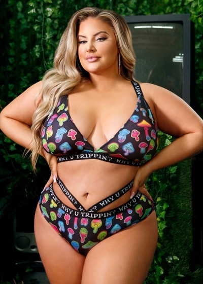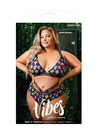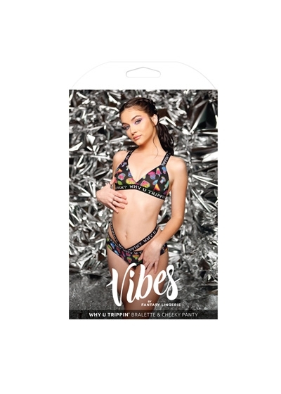 UV Reactive Print Bralette & Cheeky Panty with "Why U Trippin'?" Elastic
