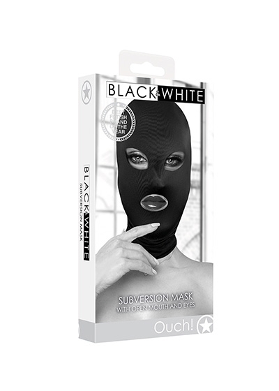 Keep your submissive incognito with this Subversion Mask. This comfortable open-mouth and eyes hood is designed to stretch completely over the head. The lightweight fabric makes breathing and hearing a snap and best of all, your subject can still see and you still have access to their mouth!