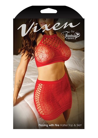 Playing With Fire High-Neck Net Top & Skirt