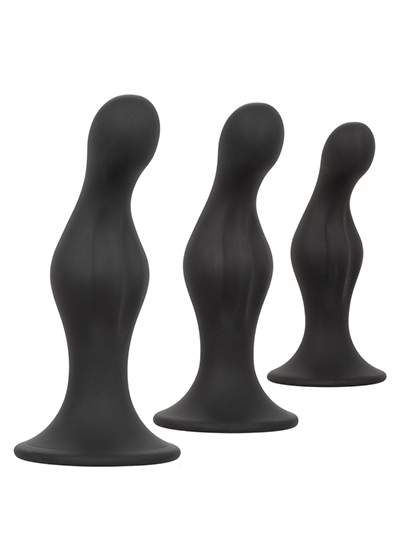 Open yourself up to a world of thrilling anal pleasure with the Silicone Anal Ripple Kit. Indulge in knee-trembling pleasure with the set of 3 graduated sizes of gently curved anal plugs with suction cup bases. Gently increase your pleasure with the naturally curved design made to hit all the right spots and keep things comfortable during playtime. Each probe in our kit gradually increases in length and girth for superb pleasure at any level of pleasure play. While each increase of your training expands your horizons, use the convenient suction cup base for steamy stimulation, effortless insertion and gentle removal. The flexible probes are made from a smooth, virtually seamless Satin Finish silicone. This body safe material is unscented and phthalate free to keep your most sensitive spots happy and healthy.