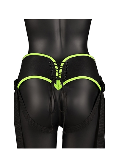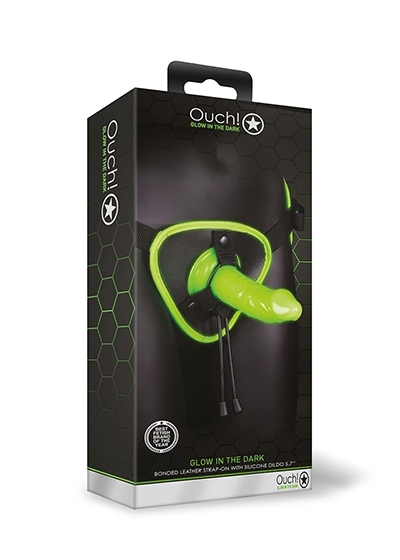 Ouch! Glow in the Dark, the future of bondage is here. Designed with an authentic bondage aesthetic, but with the added delight of the glow-in-the-dark properties, the fluorescent green detailing will turn every event into a part. With Ouch! Glow in the Dark, the fun is just beginning when the lights go out. Be bold with this strap-on harness! The strap is elastic and adjustable so it fits all body types. Ouch! Glow-In-The-Dark products must be activated with the sunlight before enjoying it in the dark.