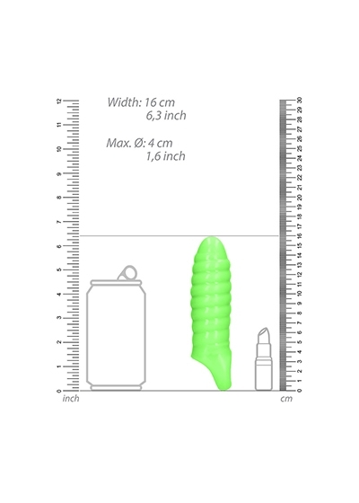 Ouch! Glow in the Dark, the future of bondage is here. Designed with an authentic bondage aesthetic, but with the added delight of the glow-in-the-dark properties, the fluorescent green detailing will turn every event into a part. With Ouch! Glow in the Dark, the fun is just beginning when the lights go out. Are you looking for just a couple of inches more in the most comfortable way possible? Then this is exactly what you need! The thick sleeve is shaped to give optimal stimulation and because of the ball strap it will stay in place. Even your best moves won't make it come off! Ouch! Glow-In-The-Dark products must be activated with the sunlight before enjoying it in the dark.