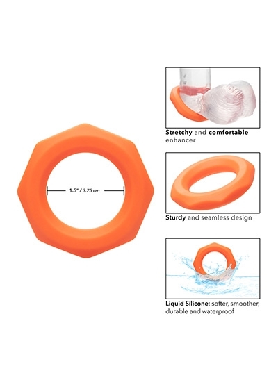 From bashful beginners to erotic experts, the Alpha Liquid Silicone Sexagon Ring will wrap you up tight in pleasure with the ultra plush, ultra stretchy enhancer ring. The playful ring is made from an ultra-stretchy liquid silicone with a unique hexagon design. This stretchy, comfortable cock ring is made to increase stamina, improve sensitivity and deliver superior erection support. Look for an explosive pleasure experience while the plush ring squeezes with every movement. The premium liquid silicone is soft, smooth, durable and waterproof.