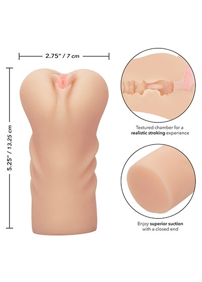 Your first time won't be your last with the Cheap Thrills® The First Time masturbator. The super tight stroke sleeve's textured chamber, intact hymen and life-like stimulation creates an instantly gratifying pleasure experience every time you slip inside. The closed-end design provides superior suction, while the uniquely textured chamber and ultra soft, stretchy Pure Skin® material thrills with life-like sensation. Whether indulging at home or wherever pleasure takes you, the compact 5.25" (13.25 cm) is the teasing travel companion you're craving. The premium Pure Skin® is unscented, phthalate free and maintenance free for truly explosive results.