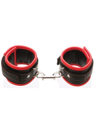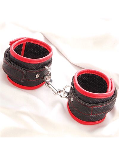A metal clip on one cuff attaches quickly and easy to a metal loop on the other cuff. The metal clip allows you to incorporate other items into your bondage games for additional fun.