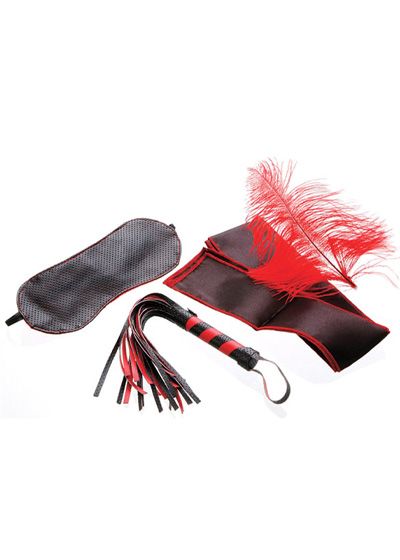 Tie your lover to the bed for a kinky flogging or blindfold them and tickle their hot spots with a feather! With this kinky kit, you can do all that and much more!