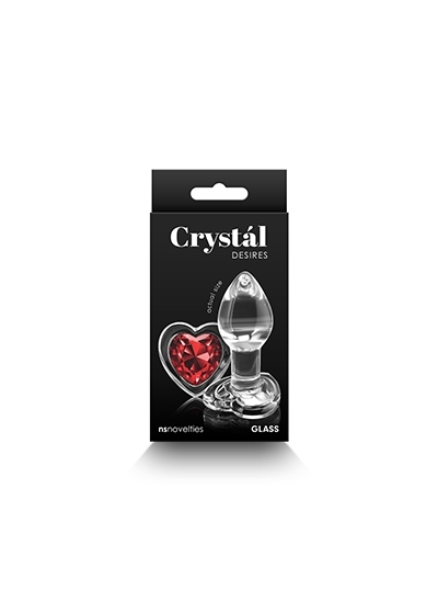 Crystal Desires -- Hearts are red and plugs are fun. Our borosilicate glass plugs are adorned with red hearts for a passionate encounter and exciting stimulation.