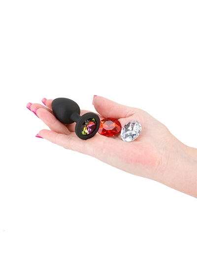 Match your mood and your booty with Glams Xchange. A fashionable accessory to entice and romance. Made from premium grade silicone featuring three interchangeable colorful gems.