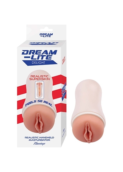 Dream-Lite Delight offers a soft, realistic feeling vagina in a lightweight, hand-held size with a tight, textured tunnel for maximum pleasure. The firm, squeezable outer shell also features a small hole on the end that can be covered or left open to create sucking sensations! To clean, please remove the sleeve from the shell, flip the sleeve inside out, and clean using toy cleaner. Allow the sleeve to air dry before placing back into the shell and screwing on the cap. Please enjoy with water-based lubricants.