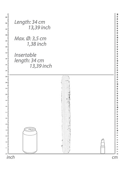 Ready for a CRYSTAL CLEAR orgasm? Reach your finest climax in style with these beautifully shaped, clear double dildos. This dildo can see right through you and will know exactly how you like it. This dildo is suitable for anal and vaginal use! Finger-like precision stimulation, great for yummy anal stimulation, and definitely a clitoris friend? You’ll find all that and more in this dildo! All REALROCK CRYSTAL CLEAR dildos are phthalate-free, latex-free, body-safe and non-porous which makes them easy-to-clean and gives them a longer lasting durability.This model stands 13.4” (34 cm) tall including the suc- tion cup, has an insertable length of 13.4” (34 cm) and has a girth of 1.4” (3,5 cm).