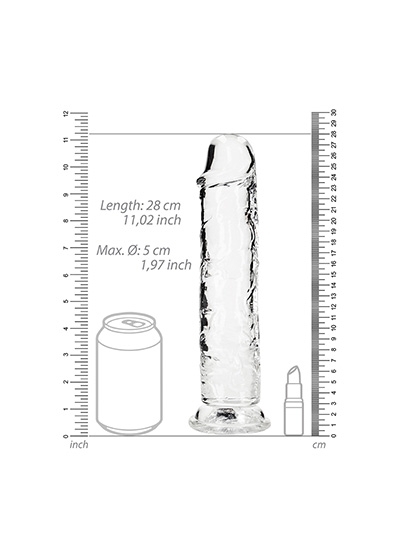 Ready for a CRYSTAL CLEAR orgasm? Reach your finest climax in style with these beautifully shaped, clear dildos. This dildo can see right through you and will know exactly how you like it. This dildo is suitable for anal and vaginal use! Finger-like precision stimulation, great for yummy anal stimulation, and definitely a clitoris friend? You’ll find all that and more in this dildo! The base functions as a suction cup for hands-free use, but also gives it the ability to be used in a harness. All REALROCK CRYSTAL CLEAR dildos are phthalate-free, latex-free, body-safe and non-porous which makes them easy-to-clean and gives them a longer lasting durability.This model stands 11” (28 cm) tall including the suction cup, has an insertable length of 9.8” (25 cm) and has a girth of 1.8” (4,5 cm).