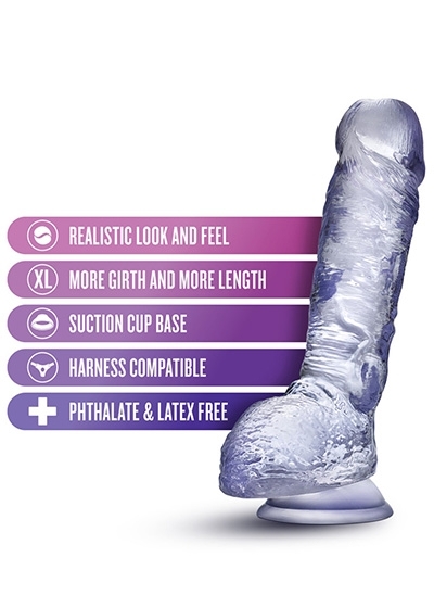 Fulfill your fantasy Blush B Yours Plus Mount n' Moan is a realistic dildo with a slight curve for G-spot and P-spot stimulation, and feature a strong suction cup base that holds to any smooth flat surface for hands free play. Or partner up for strap on O-ring harness fun! Mount n' Moan has a tapered head for easy insertion and is clear for optimal viewing during play. These dildos feature a soft feel for a comfortable and realistic experience with a little something for everyone. Made of premium TPE, B Yours Plus toys are free of phthalates, fragrances, latex, and paraffins. Ultra soft (but hard enough for play!) and realistic, Mount n' Moan is ready to bring pleasure to your playtime with extra girth and extra length to leave you feeling full and stretched! They were made with your pleasure in mind and are prepared to deliver a realistic experience with an extra bang! As with all products and/or materials at Blush it has been 3rd party lab tested to meet or exceed REACH and Prop65 safety compliance directives. It's your body. Be mindful of what you put in it. Find your perfect match and delight in this pleasurable and fun collection!