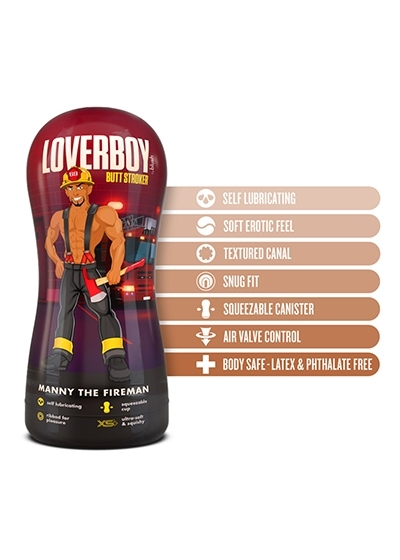 Manny the Fireman is loaded with fun! This pocket stroker is self lubricating, just add a little water or saliva and everything gets slippery. Squeeze the cup and open or close the PerfectFlo Air Valve Control for more suction and pleasure. The Loverboy masturbators are soft, flexible, and filled with sensational textures that will drive you over the edge! Manny the Fireman contains no Phthalates, Paraffins, or Latex and is so realistic… It feels like the real thing. It's time to ride the waves of pleasure! Self-lubricating properties are temporary. It will last up to 12 uses. To clean, wash with soap and water. Pat dry and allow to air dry before storing. Use products only with water based lubricants. It is recommended to start using water-based lubricants after self-lubricating properties begin to diminish. The Loverboy is a sex toy for men.