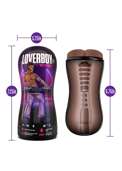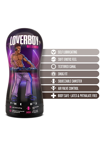 The DJ is loaded with fun! This pocket stroker is self lubricating, just add a little water or saliva and everything gets slippery. Squeeze the cup and open or close the PerfectFlo Air Valve Control for more suction and pleasure. The Loverboy masturbators are soft, flexible, and filled with sensational textures that will drive you over the edge! The DJ contains no Phthalates, Paraffins, or Latex and is so realistic… It feels like the real thing. It's time to ride the waves of pleasure! Self-lubricating properties are temporary. It will last up to 12 uses. To clean, wash with soap and water. Pat dry and allow to air dry before storing. Use products only with water based lubricants. It is recommended to start using water-based lubricants after self-lubricating properties begin to diminish. The Loverboy is a sex toy for men.