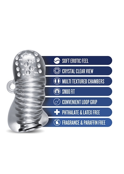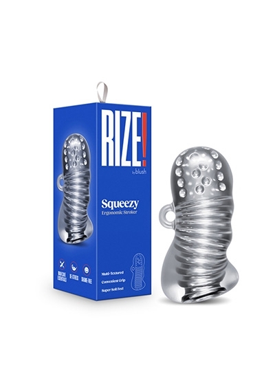 The RIZE! Squeezy is designed for maximum comfort and to achieve optimal levels of personal performance. Add a little bit of your favorite lube and enjoy the snug grip as the multi-textured chambers create an incredible array of sensations. The no-slip handle and finger grips on the outside keeps everything under control. Squeezy is crystal clear for a great view of the action! It’s easy to clean, contains no phthalates, paraffins, or latex.