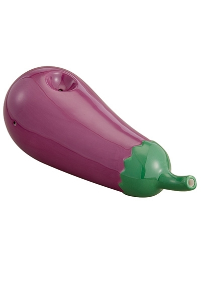 Eggplants may not be everyone's fave food, but this eggplant-shaped pipe is sure to be a winner! Makes a perfect gift idea for any 420 culture themed event. This trendy eggplant pipe is made from ceramic and painted in a realistic purple color with a green stem.