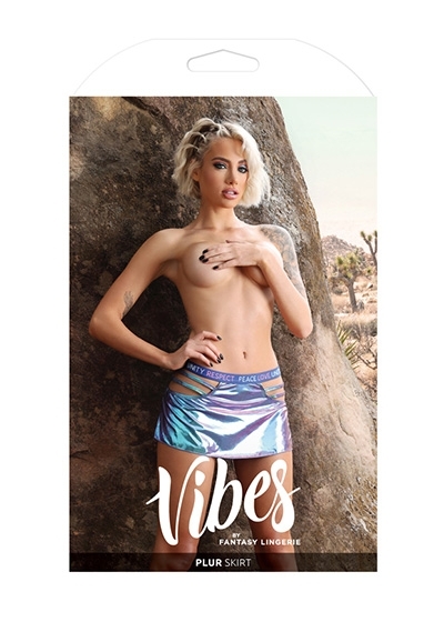 Holographic Cut-out Skirt with "Peace Love Unity Respect" Elastic