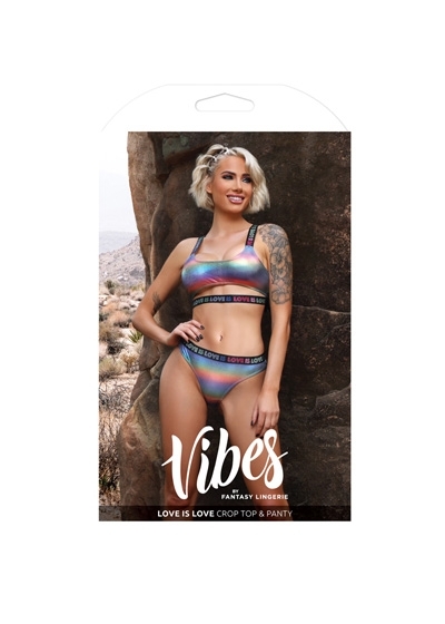 Holographic Crop Top & Matching Panty with "Love is Love" Elastic