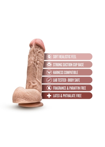 The doctor will see you now! Look out for Mr. D! Stick him to any smooth surface with his sturdy suction cup base for a hands-free adventure. Dr. Skin are harness compatible, so strap him into your favorite dildo harness for intense strapon partner play. This dildo has all the sculpted veins, balls, and texture of a real cock and plans to give you that realistic experience you've been looking for. Mr. D is formed from soft, Body Safe, Non-Porous PVC. Contains no Fragrance, Phthalate, Paraffins or Latex. Blush excels at creating incredible, realistic dildos that will compliment your fantasies and leave you feeling satisfied! This toy can be easily cleaned with warm water and a fragrance-free soap or your favorite toy cleaner.