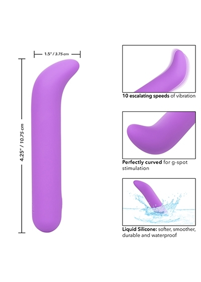 Indulge in a pleasure paradise with the teasing Bliss™ Liquid Silicone Mini G Vibe. This sensational travel-friendly vibe is made of body-forming liquid silicone and features an intimately curved tip and 10 powerful speeds of vibration. The curved tip and smooth shaft are perfect for caressing internal and external sweet spots.