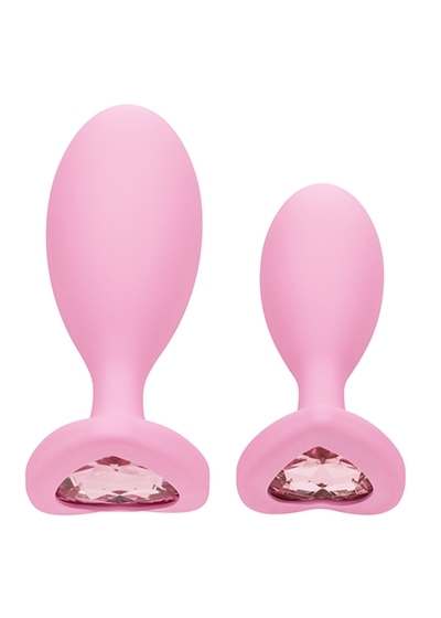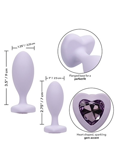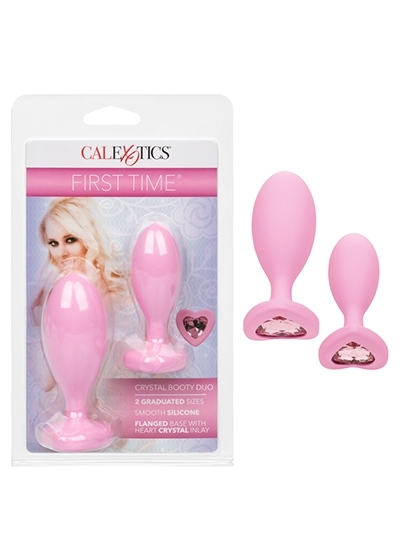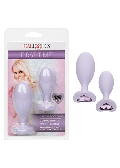 Indulge your naughtiest fantasies and open yourself up to thrilling backdoor play with the First Time® Crystal Booty Duo. This play-ready kit includes 2 graduated anal plugs with dazzling heart crystal inlay base, curvaceous probe design, and plush silicone body.