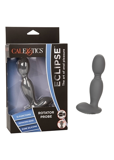 The Eclipse Rotator Probe is a sensual silicone probe created to ease you into thrilling anal pleasure. While the ergonomic design and plush silicone allow you to play with ease, a rotating tip and 12 powerful functions of vibration deliver earth-shaking pleasure. Choose the intensity of your pleasure and ride the waves of orgasmic internal stimulation with synchronized rotation and vibration.