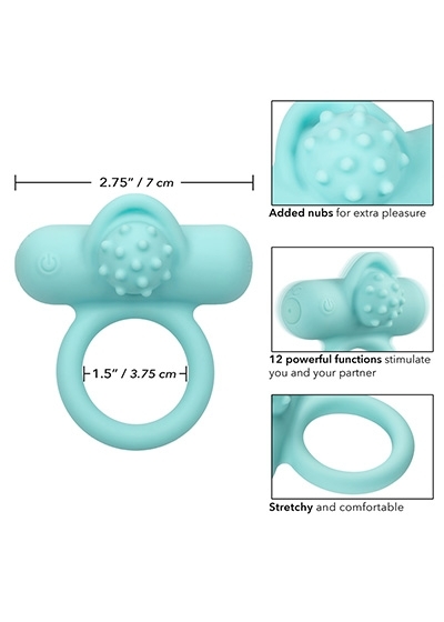 The Silicone Rechargeable Nubby Lover's Delight mixes 12 intense functions of vibration with an erotically nubbed surface for even more knee-shaking pleasure. The stimulating nubbed surface, uniquely shaped teaser and 12 functions of vibrations are here to deliver intense pleasure. This stimulator ring is great for beginners looking to spice things up or erotic experts looking to add intense pleasure to their arsenal.