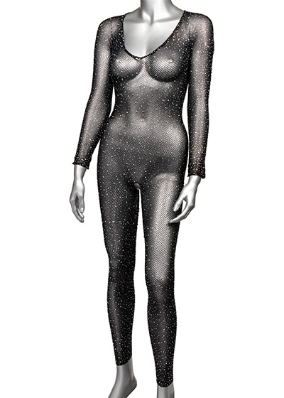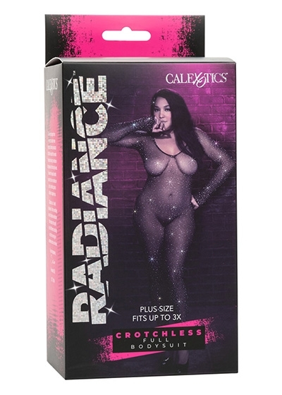 Watch your lover melt at the sight of you in the seductive Radiance™ Plus Size Crotchless Full Body Suit. The full length bodysuit wraps your curves in a soft, breathable mesh, sparkling rhinestones, and a wickedly fun crotchless design.