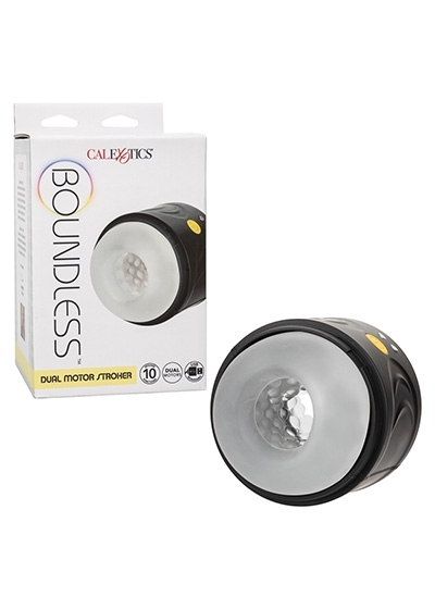 The Boundless™ Dual Motor Stroker is a vibrating, waterproof stroker with dual motors, 10 functions of vibration, and a daring dual entry design made for endless pleasure. A textured chamber and travel ready design make this rumbling masturbator ready for pleasure play anytime. The plush, textured chamber squeezes tight with every stroke, while the variety of vibration functions tickle and tease you towards new climactic heights.