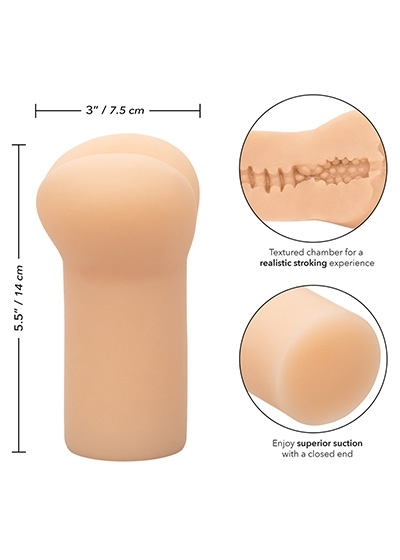 Indulge in thrilling wet dreams with the naughty Cheap Thrills® The Glory Hole masturbation stroker. The closed-end design provides superior suction, while the multi- textured chamber and ultra soft, stretchy Pure Skin® material thrills with life-like sensation. The superior suction and thrilling texture are made to wrap every inch of you with knee-shaking stimulation.