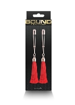 Bound Adjustable Nipple Clamps are for erotic and stimulating sensations. Made from nickel-free metal, Bound's clamps feature silicone tips for a better comfort and fit. Available in assorted shapes and colors.