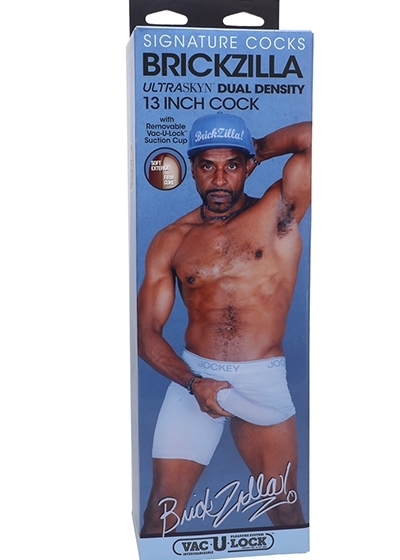 Brickzilla's massive Signature Cock is molded directly from his body and handcrafted in dual density ULTRASKYN, with lifelike veins and curves for the ultimate porn star experience. This material perfectly captures every detail, mimics the unique feel of real skin, and warms to body temperature with use.