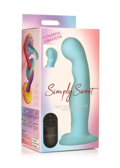 Simply Sweet 21X Vibrating Thick Silicone Dildo With Remote Blue