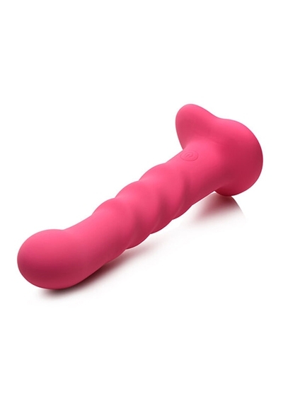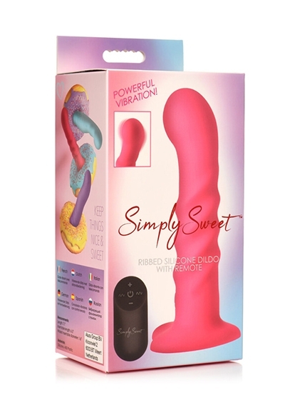 Simply Sweet 21X Vibrating Ribbed Silicone Dildo With Remote Pink