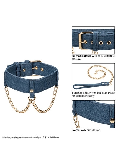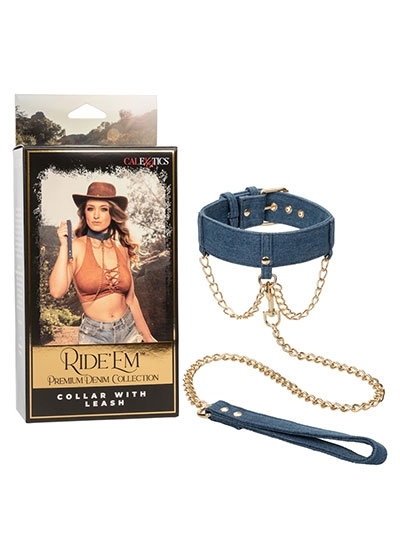 Introducing the Ride 'em™ Premium Denim Collection Collar with Leash, a must-have accessory for those who crave a touch of adventure and kink in their intimate moments. This sturdy collar is designed to bring a sense of control and excitement to your playtime.