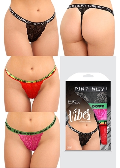 3 Piece Lace Thong Panty pack with "That's Dope," "I'd Hit That," & "Why U Trippin'" Elastic
