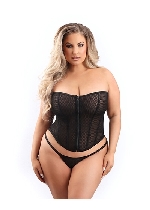 Mesh Overbust Corset with Front Zipper, Ribbon Lace-up Back and Matching G-string Panty