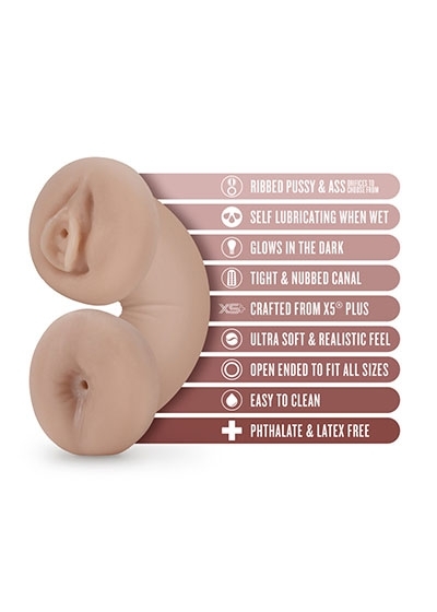 Tasha is your dream AI partner, ready to make your most epic fantasy come true! Featuring a convenient handheld design, this luxurious male stroker provides two ends of penetration with ribbed pussy & ass orifices, offering two points of enhanced pleasure. It is handcrafted with precision using ultra-soft X5® Plus, with self-lubrication technology for soft & wet stroking that makes it hard to last long. It is open ended to fit all sizes and comes equipped with a glow-in-the-dark feature that will light up the bedroom and transcend your sexual experience to new realms. Tasha is way more than just an adult sex toy, this sex machine is your portal to unimaginable pleasure and the thrill of a lifetime. She is here waiting for you, are you up for the adventure?