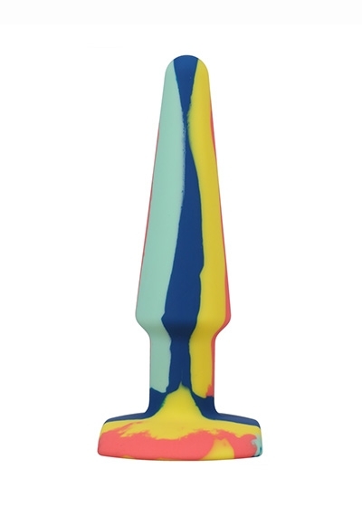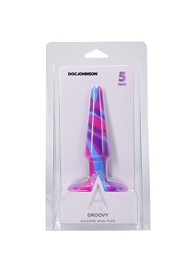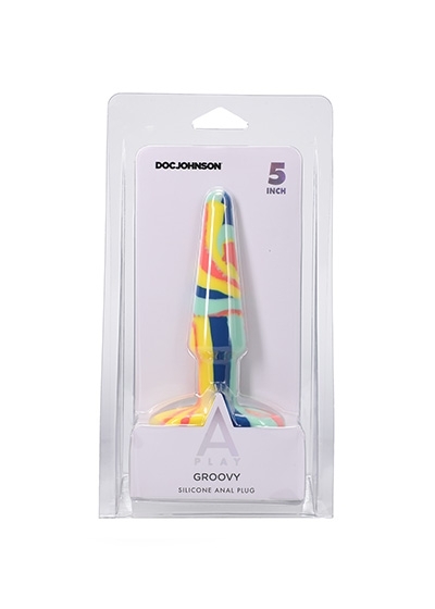The A-Play Groovy is a soft multi-colored anal plug made of health-grade silicone. Its tapered tip and wide base make for safe, comfortable play, and its firm-yet-flexible feel allows for a little wiggle. Each plug is unique and has a its own variation of the color pattern.