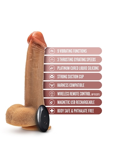 The Dr. will see you now. Prepare for an erotic adventure with Dr. Philips, the mighty 9-inch realistic dildo that is guaranteed to blow your mind! With the wireless remote control, you have the power to take control of your pleasure with this sex toy, exploring a wide range of sensations with 9 powerful vibrating functions and 3 thrilling thrusting/gyrating speeds. Advanced gyrating technology delivers continuous pumps of rhythmic pleasure, driving you towards fantastic climaxes. Made with a platinum cured liquid silicone shaft, Dr. Phillips conforms to your body for unparalleled comfort and maximum penetration. The adjustable suction cup base of Dr. Philips opens a whole new world of possibilities, allowing you to enjoy hands-free pleasure on any smooth surface. When it's time to recharge, the magnetic USB charging feature makes it convenient and hassle-free for continuous use. Your prescription is in, Dr. Philips is ready to deliver!