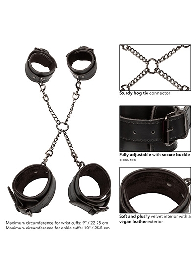 Designed with functionality and durability in mind, this hog tie set boasts a contemporary design that combines a soft and plushy velvet interior with a sleek vegan leather exterior. The combination of comfort and style ensures a luxurious experience for both the dominant and submissive.
