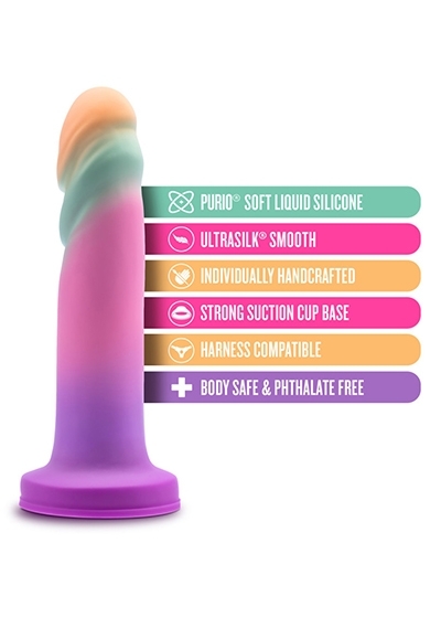 Modern, stylish, and beautiful - Meet Avant Sunrise Gaze! This artisanal dildo is hand sculpted with your utmost pleasure and comfort in mind, crafted with a pastel sherbet hue that brings you all the intimacy of a warm summer sunrise. Avant Sunrise Gaze flaunts a gracefully wide shaft, shaped with textured ridges and a broad head to maximize your G-spot and P-Spot pleasure during play. It’s crafted with Purio®, the finest platinum-cured liquid silicone and wrapped in satin smooth UltraSilk®, providing a supremely soft feel upon penetration. Avant is body-safe, free of phthalates, fragrances, latex, and paraffins. It’s also harness compatible with a strong suction cup base that opens a world of new fascinating possibilities for hands free play. Let Avant Sunrise Gaze be your invitation to explore the dawn of your deepest desires, illuminating your path to personal pleasure as the first light of daybreak.