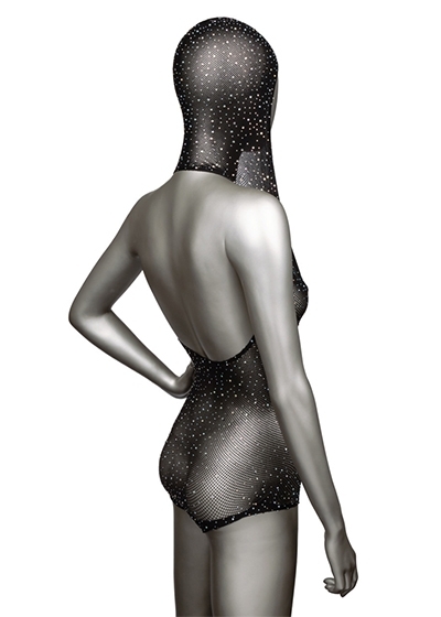 The hooded body suit is adorned with dazzling rhinestone accents, adding a touch of glamour and sparkle to your look. The rhinestones catch the light, enhancing your natural beauty and creating an eye-catching effect.