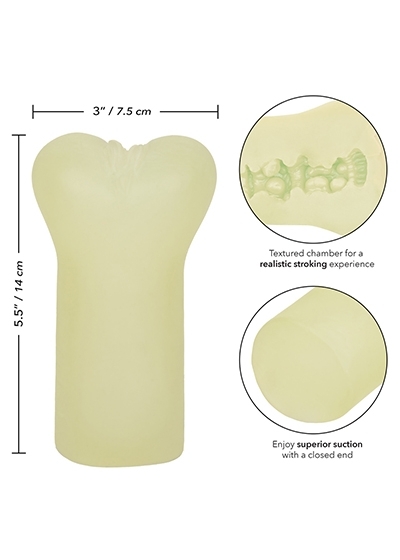 Embrace the excitement and pleasure of Cheap Thrills® with The Phantom Girl masturbator. Its glow-in-the-dark feature, ultra life-like feel, textured chamber, and superior suction combine to create an unforgettable experience.