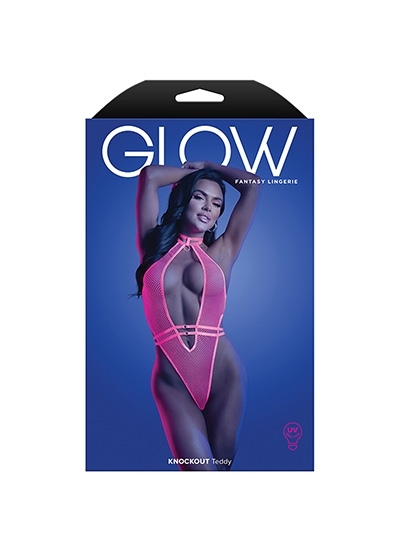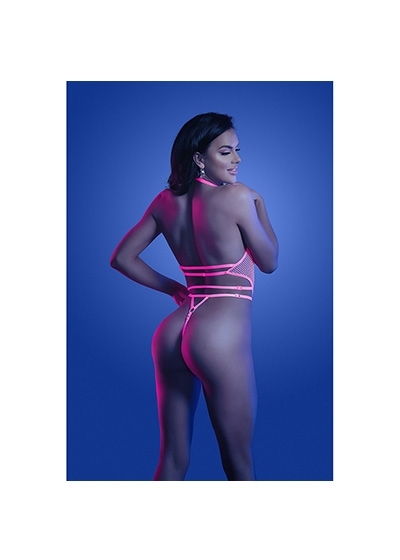 UV Reactive Halter Teddy with Adjustable Straps and G-string Cut Back with Detachable G-hook
