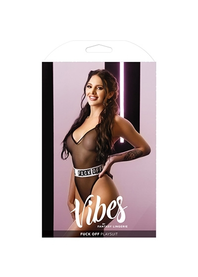 Cheeky Mesh Playsuit with "Fuck Off" Elastic Waistband